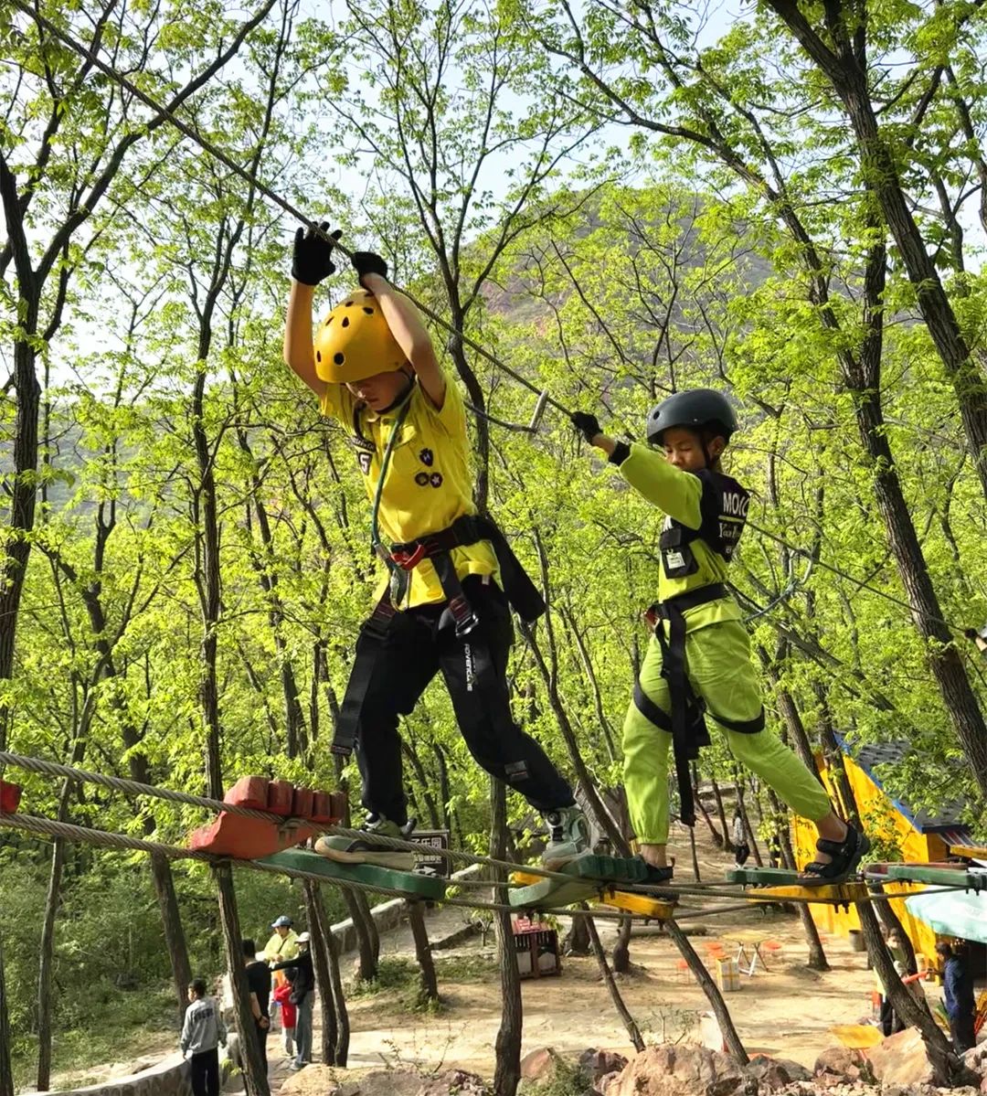 是一項(xiàng)在樹林間進(jìn)行的探險(xiǎn)項(xiàng)目,它是在樹木之間建設(shè)了一條具有多種障礙、獨(dú)特關(guān)卡的挑戰(zhàn)線路,由懸空橋梁、網(wǎng)道、步道、鎖鏈等趣味環(huán)節(jié)組成,線路長約為300米,適合家庭親子體驗(yàn),在刺激挑戰(zhàn)的同時(shí),也可以增強(qiáng)體魄,體驗(yàn)戶外大自然帶來的健康和新奇感受。