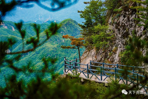 佇立在棧道或觀景臺上,迎著清爽的晨風(fēng)扶欄遠(yuǎn)眺,林立的山峰染上金黃,蜿蜒的滍水泛著亮光,大好河山一覽無余,心胸瞬間容納天地。