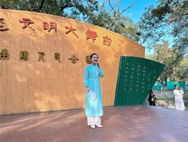 推介活動(dòng)在武當(dāng)武術(shù)《拂塵玄風(fēng)》中拉開(kāi)帷幕,武當(dāng)文旅推介官向現(xiàn)場(chǎng)觀眾推介了武當(dāng)山精品旅游線路和景區(qū)旅游資源。