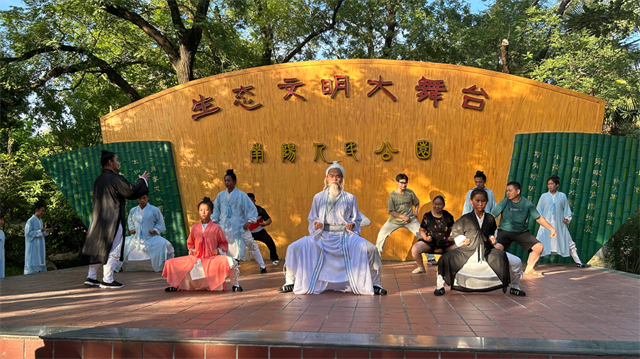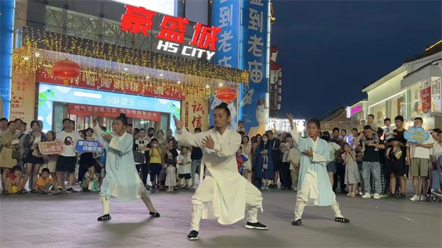在互動(dòng)環(huán)節(jié),觀眾們?cè)诂F(xiàn)場(chǎng)跟隨武術(shù)隊(duì)員學(xué)習(xí)體驗(yàn)了武當(dāng)養(yǎng)生功,深刻感悟武當(dāng)武術(shù)健康、和諧、向上的精髓和文化內(nèi)涵。