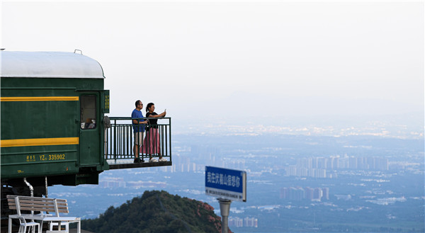 7月9日,游客在新密市伏羲山一處觀景臺游玩。 新華社記者 吳剛 攝