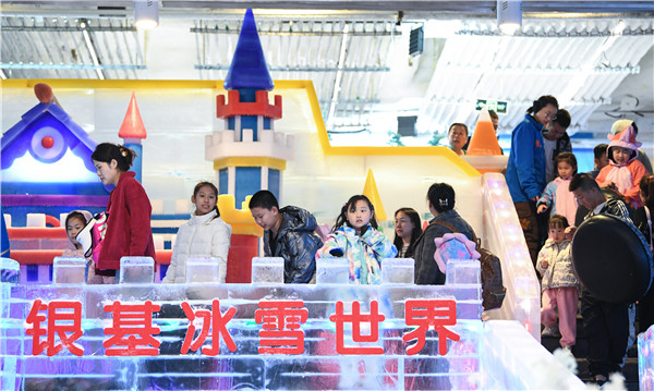7月8日,游客在新密市銀基國際旅游度假區(qū)冰雪世界內(nèi)游玩。 新華社記者 吳剛 攝