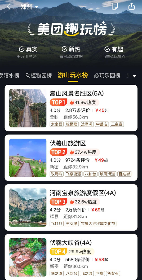 在美團(tuán)、攜程、抖音、飛豬等平臺(tái)推出的鄭州周邊山水游榜單中,中岳嵩山與伏羲山穩(wěn)居前列。自高溫天氣以來(lái),相關(guān)門(mén)票的銷(xiāo)售量迎來(lái)大幅上漲。