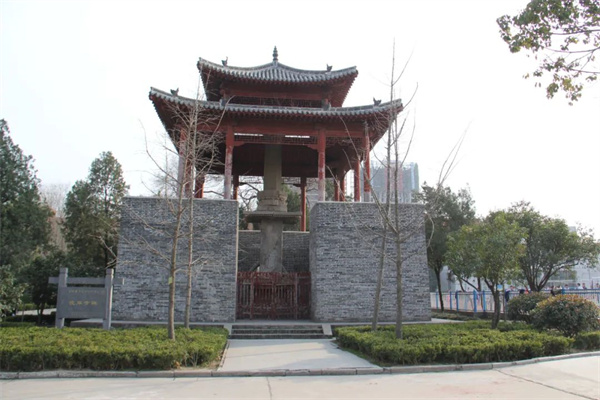 彼岸寺碑位于漯河市郾城區(qū)實(shí)驗(yàn)中學(xué)院內(nèi),又稱“彼岸寺經(jīng)幢”、龍塔古篆”,為明清郾城八景之一。彼岸寺碑為北宋景德年間刻立。碑文記述尉氏僧人契宗大師于太平興國年間來此募資十五年,重修彼岸寺的情況。彼岸寺碑通高12.18米,由底盤、基座、篆文碑、造像碑、頂?shù)葮?gòu)成。除頂部為磚石結(jié)構(gòu)外,其余構(gòu)件均為青石雕琢對接而成。彼岸寺碑設(shè)計(jì)精湛,造型古樸美觀,通體雕刻人物、佛事等故事,氣韻生動,堪稱一絕,2006年,被國務(wù)院公布為第六批全國重點(diǎn)文物保護(hù)單位。