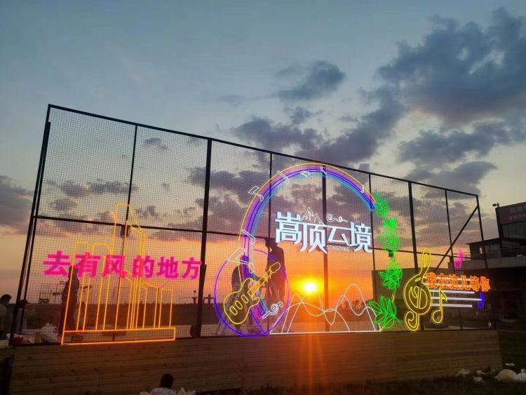 湛藍晴空下,眾多五顏六色的帳篷在草地上“安營扎寨”,不少家長帶著孩子自駕前來休閑度假。在色彩斑斕的打卡墻前,看到“去有風(fēng)的地方,我在嵩頂云境等你”等富有感染力的字樣 ,眾多游客紛紛打卡拍照。“游在云境中,行在花徑上,宿在花香里。” 據(jù)工作人員介紹,為營造濃郁的藝術(shù)氛圍,該度假區(qū)在高級雪道打造出“大地藝術(shù)”,在嵩頂北麓山坡上利用種類繁多的花草呈現(xiàn)出多彩的圖案,為自然曠野披上“華彩霓裳”“花枝蔓徑”“花枝鳳徑”等大地工筆藝術(shù)雕刻為嵩頂云境微度假旅游區(qū)增添一道靚麗的風(fēng)景線。