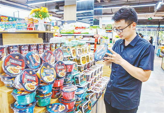 市民在選購(gòu)漯河市企業(yè)生產(chǎn)的預(yù)制菜產(chǎn)品 楊光 攝