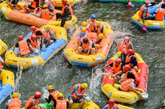 來到堯山,漂流值得一玩。深水處可激流勇進(jìn)驚險(xiǎn)刺激,淺水處可靠岸蹚水,坐著皮劃艇在山水中穿行,將美景盡收眼底。漂流中自然少不了打水仗,記得帶好水盆水槍,和朋友們“大戰(zhàn)一場”!