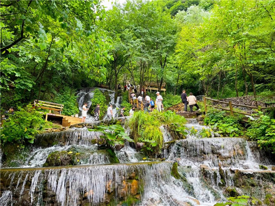 重渡溝有兩條游玩路線,西溝滴翠河路線坡度稍大,喜歡爬山的小伙伴可以走這條線路,看看山間清泉溪流。南溝金雞河路線地勢更加平坦,步行起來更加輕松,有瀑布溶洞可以觀看。