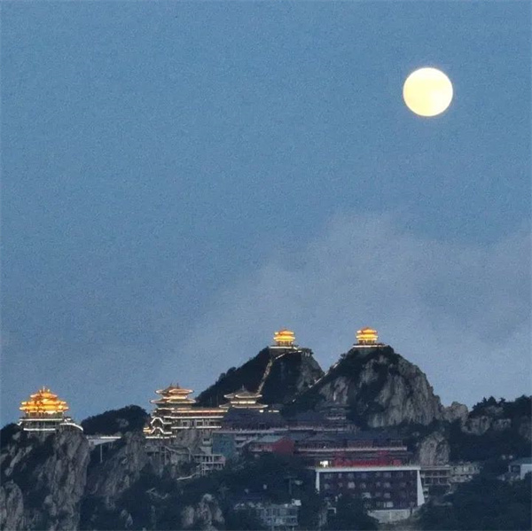 從舉頭望明月,到千里共嬋娟,月亮也被詩人寄以相思的名義寫進(jìn)詩詞。山頂?shù)囊股校盹L(fēng)微涼。金殿與月亮相遇、互相映襯,這是獨屬于老君山的極致浪漫。