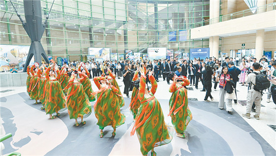 隨著熟悉的音樂響起,“唐宮小姐姐”再度上演火爆一時(shí)的舞蹈《唐宮夜宴》,一旁,少林功夫剛勁有力,再現(xiàn)“功夫之都”的赫赫風(fēng)采,一舞一武,相得益彰;世界各國及國內(nèi)旅游城市的展板和宣傳片吸引了嘉賓的目光;羅山皮影戲、玉雕、汝瓷等14個(gè)非遺項(xiàng)目集中亮相,仿宋點(diǎn)茶雅韻十足,帶嘉賓領(lǐng)略古風(fēng)器物之美……作為2023中國(鄭州)國際旅游城市市長論壇的組成部分,9月4日,“國際旅游城市交流展”巡展在鄭州國際會(huì)展中心軒轅廳一樓大廳舉辦,為所有賓朋送上一份獨(dú)特的文化禮物。