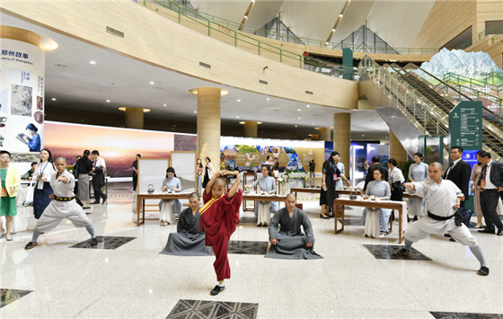 全程展演區(qū)以展示中原文化為核心,融入具有鄭州特色的時(shí)尚文旅IP形象,與河南特色的傳統(tǒng)文化藝術(shù)形式相結(jié)合,動(dòng)靜兼顧、歷史與現(xiàn)代交融。《唐宮夜宴》再現(xiàn)了“鬢云欲度香腮雪,衣香袂影是盛唐”的盛唐氣象;仿宋點(diǎn)茶配合花道、香道、琴道,盡顯宋文化的精致與浪漫,讓大家在唇齒留香中回望千年宋茶文化;少林功夫則展示了一指禪功、少林靜禪功、少林童子功等,與常規(guī)少林功夫表演不同,這次更多展示的是少林僧人平時(shí)練功時(shí)的狀態(tài)。