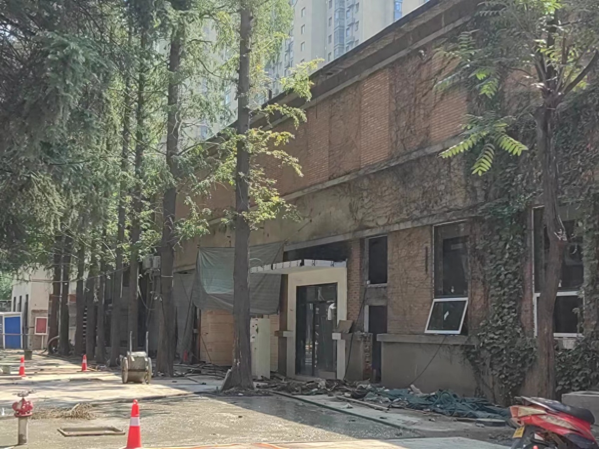 院內(nèi),有商鋪的裝修已接近尾聲。