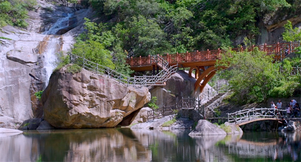 天柱峰上的祖師殿、玉皇廟,傳來的道樂與眼前水聲共和鳴,隱隱彌漫著大道修渡的真諦,蘊(yùn)含著說不清道不明的種種玄妙。劉秀、王莽兩軍對(duì)壘的鑼鼓洞早已偃旗息鼓,成為輕輕拂過的歷史云煙。而水簾洞也黝黝森森,惟見溪水潺潺,散縷似珠。