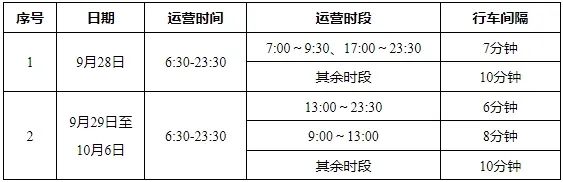 調(diào)整后運(yùn)營(yíng)時(shí)間為6:30—23:30,最小行車(chē)間隔為6分鐘。具體如下: