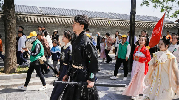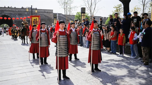 守一城而捍天下。假期期間,在商丘古城與千古名將張巡扮演者互動(dòng)交流,巡城甲士們?yōu)槟q{護(hù)航。