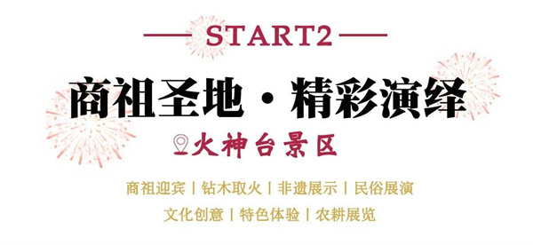 火神臺(tái)景區(qū)有《商祖迎賓》、《鉆木取火》實(shí)景演出、非遺項(xiàng)目《火神祭祀》,有非遺展示、民俗展演、農(nóng)耕展覽等,還有多種特色互動(dòng)體驗(yàn)項(xiàng)目。打卡商祖圣地,領(lǐng)略殷商文化、火文化的魅力。