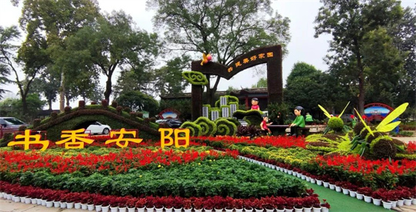 “今年安陽市國慶立體花壇主要圍繞“打造中華字都,建設(shè)國際旅游目的地城市”“書香安陽”“歡度國慶”的主題進行創(chuàng)意設(shè)計,通過富有新意的國慶花壇造型設(shè)計打造中華字都品牌,營造良好的中秋國慶旅游氛圍,吸引更多的游客來安陽觀光旅游,領(lǐng)略安陽厚重的殷商文化,度過一個難忘的中秋國慶佳節(jié)。”市園林綠化和環(huán)境衛(wèi)生事務(wù)中心負責人告訴記者。“除了大型立體主題花壇外,安陽市還在高鐵站廣場、部分游園和道路節(jié)點擺放近20萬盆各類鮮花組成平面造型,扮靚“中華字都”。