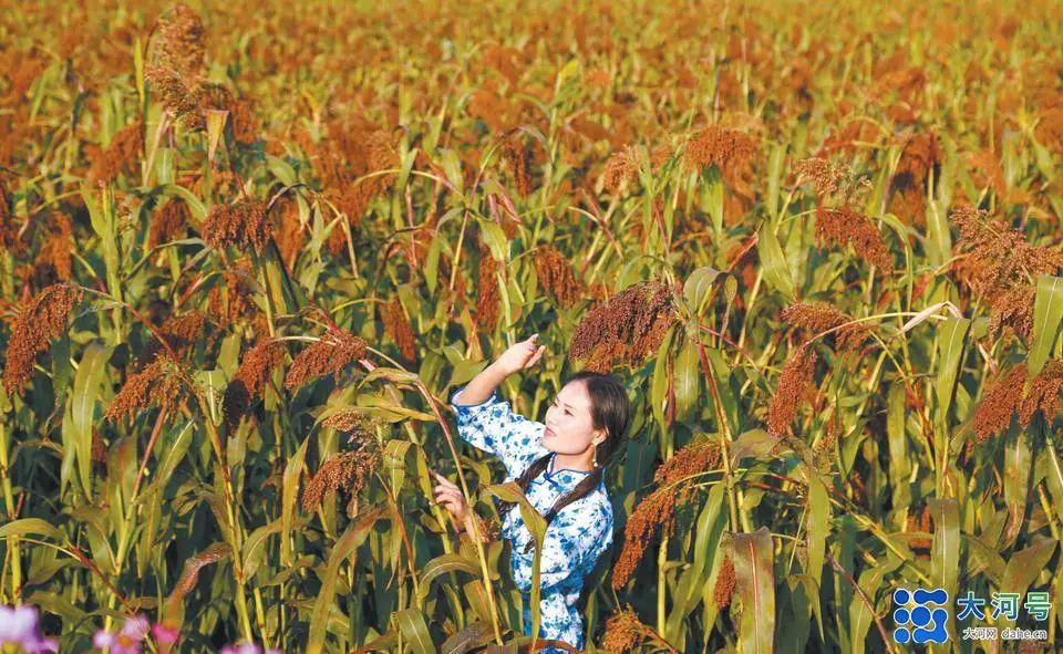 9月23日,一名游客在鄧州市十林鎮(zhèn)景營村的高粱地里拍照留念。(高峰 尹紅衛(wèi) 攝)