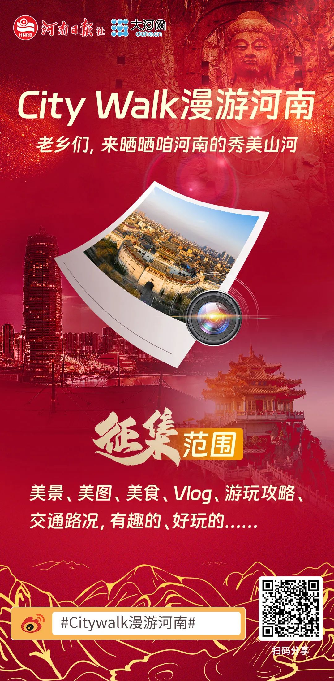 參與途徑:途徑一,通過大河網(wǎng)客戶端發(fā)布,自擬標題,發(fā)帖時選擇話題#Citywalk漫游河南#或直接跟評,分享拍攝照片及你與國慶的故事。