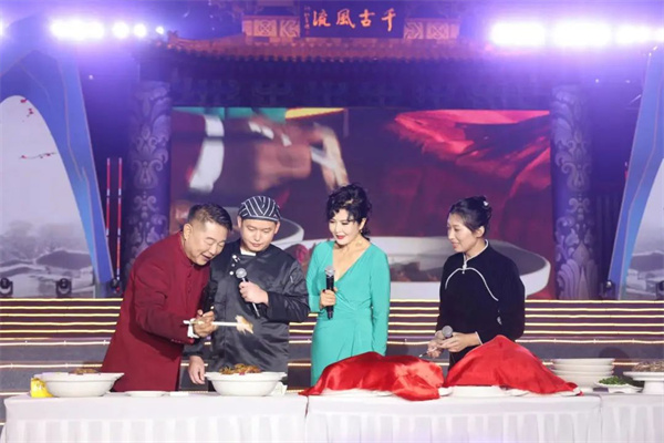 大會現(xiàn)場擺上一排長桌宴,主持人肖東坡、國家一級演員田珉現(xiàn)場體驗郟縣特色美食:百年老湯、二十多味調(diào)料、精選一年以上散養(yǎng)鮮活柴雞、文火慢煮三個小時的郟縣燒雞,采用天然植物香料與“玉泉”水腌制而成、第二批全國名特優(yōu)新農(nóng)產(chǎn)品名錄、全國八大良種黃牛之一的郟縣紅牛肉,距今已有1400多年歷史傳承、做工獨特、用料考究的郟縣饸饹面,還有郟縣豆腐菜、東坡肉等等。郟縣是“中國美食之鄉(xiāng)”,獨特的地方美食,不僅是人民群眾對健康美好生活的追求,更是郟縣人民濃濃的時代記憶和鄉(xiāng)愁情懷。