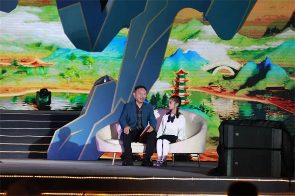 大會現(xiàn)場,國家一級演員邵峰牽著小女孩為現(xiàn)場觀眾和廣大網(wǎng)友講述了出彩郟縣人的故事。
