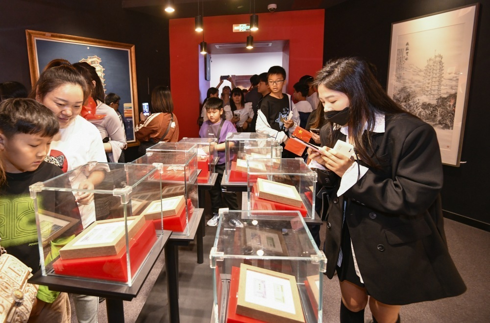 在二七紀念塔門口,特別推出的“邀您與國旗同框”活動吸引一批又一批市民前來拍照打卡。