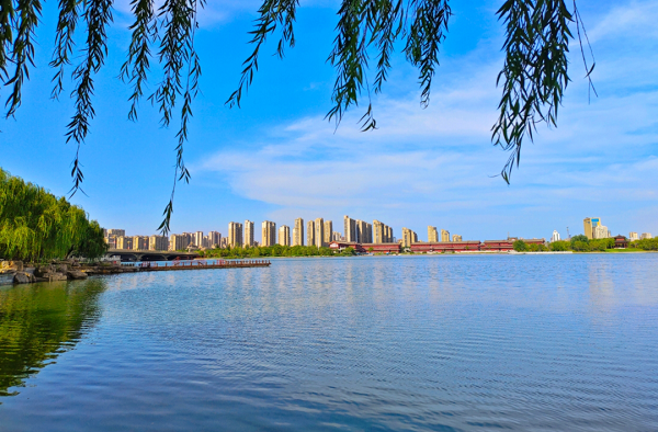 開封黑崗口調(diào)蓄水庫景色優(yōu)美、亭臺水榭、風(fēng)光旖旎,湖面波光粼粼,兩岸綠樹成蔭,景色怡人,不僅使給市民帶來“一步一景”的視覺體驗,也成為開封市民周末休閑好去處。