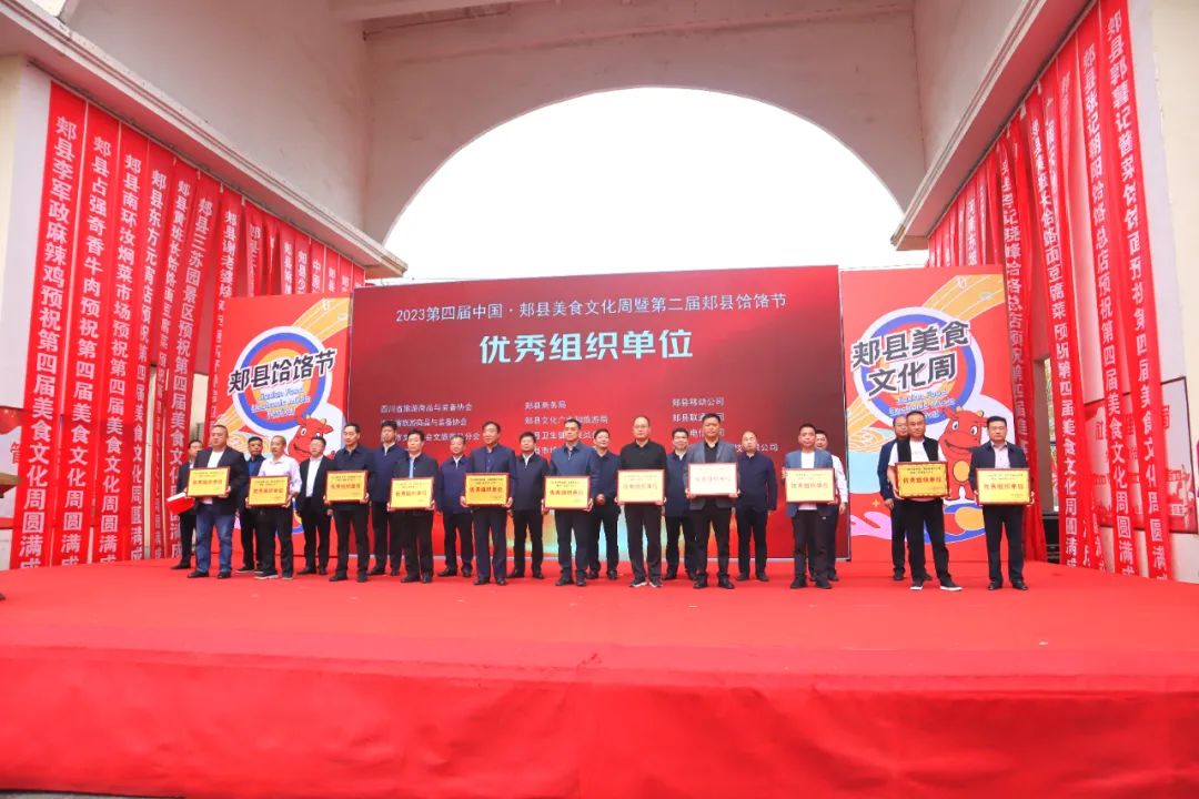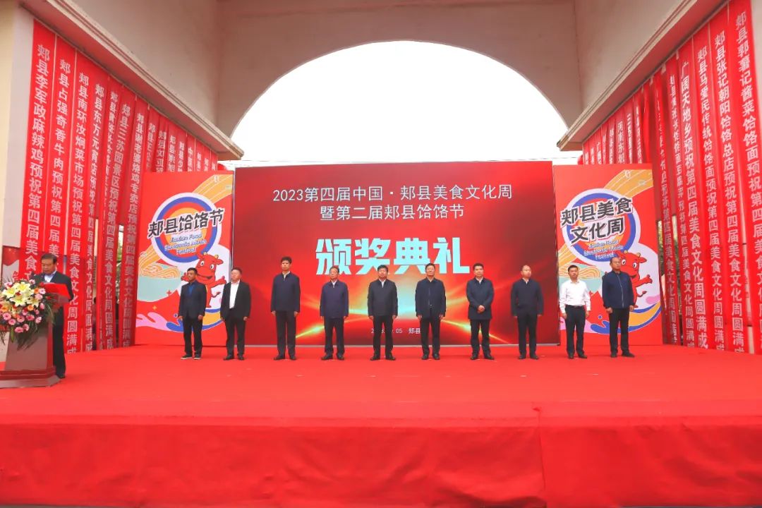 儀式上,楊繼朝宣讀了“2023第四屆中國·郟縣美食文化周暨第二屆郟縣饸饹節(jié)”優(yōu)秀組織單位、名優(yōu)特產(chǎn)品展示優(yōu)秀組織單位、品牌合作單位、支持單位、活動貢獻(xiàn)獎、現(xiàn)場人氣獎名單。與會領(lǐng)導(dǎo)分別為獲獎單位、商戶進(jìn)行了頒獎。
