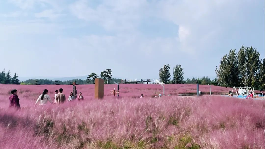 虢都花海位于仰韶大道與金昌立交橋交叉口附近,走進(jìn)園內(nèi),蟲(chóng)鳴鳥(niǎo)叫,微風(fēng)習(xí)習(xí);遠(yuǎn)遠(yuǎn)望去,一片片粉黛亂子草的花穗在秋風(fēng)中搖曳多姿,漫步其中猶如徜徉在粉紅色的海洋,令人流連忘返,游客們直呼:“太夢(mèng)幻了!”