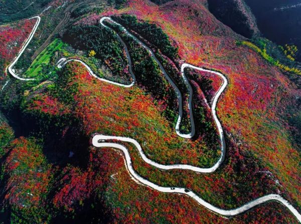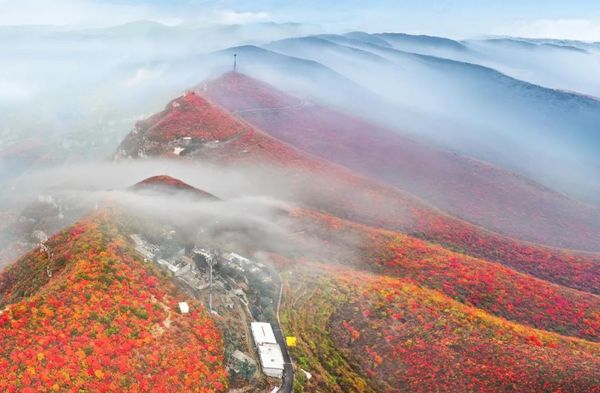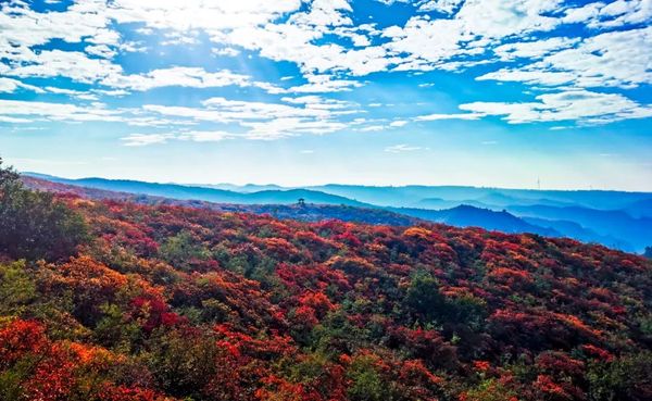 十萬畝連天紅葉讓秋日的靳家?guī)X