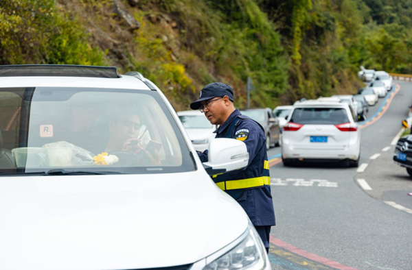 假日期間白云山全體工作人員在崗,積極引導(dǎo)、疏散景區(qū)車流、客流,全面營造舒心的度假環(huán)境。