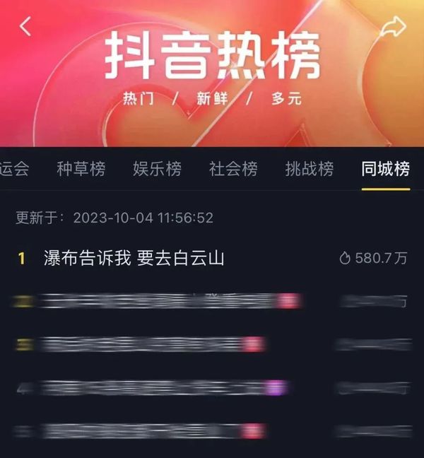 這份美景再次登上抖音熱榜,排名抖音全國種草榜21名、同城榜第一,現(xiàn)數(shù)據(jù)仍不斷更新中。