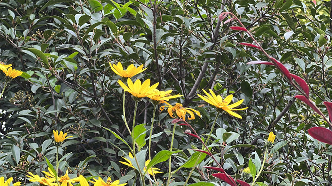 進(jìn)入十月,園內(nèi)郁郁蔥蔥的樹木漸漸褪去綠色,秋風(fēng)卷攜著落葉款款而來,西山植物園也換了一身秋裝。看那金黃的菊花,引來蜜蜂翩翩飛舞,誰說秋天只能寂靜、蕭條,秋天一樣有花開得絢爛,目光所及之處是那飽滿的色彩,艷麗的美景,來來往往的游客休閑愜意,不少人牽著孩子,陪伴著家人、朋友,或漫步在植物園的小路上,或在樹蔭下的長椅上休憩,放下生活工作的壓力,感受秋日里的慢時光。