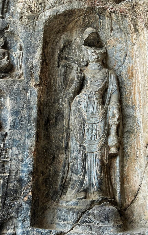 它被稱為龍門石窟最美觀世音像。龍門石窟研究院對外交流合作部主任王青茹介紹,京劇大師梅蘭芳先生在塑造洛神這一藝術(shù)形象時總感覺不盡如人意,適逢來到龍門石窟參觀,立即被這尊觀世音菩薩像吸引,頓然開悟,洛神角色得以詮釋。
