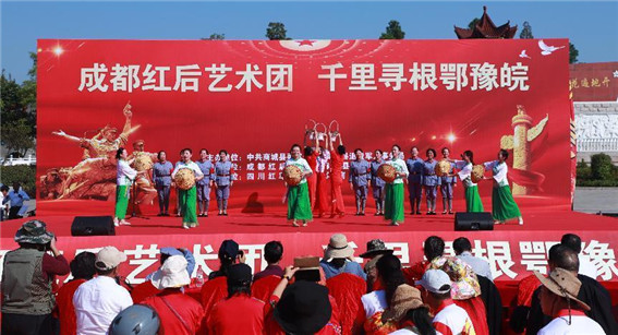 10月18日,成都紅后藝術(shù)團開展的千里尋根鄂豫皖活動走進河南省信陽市商城縣,傳承革命精神,弘揚紅色文化,助推川豫兩地革命老區(qū)鄉(xiāng)村振興、紅色旅游和文化發(fā)展。
