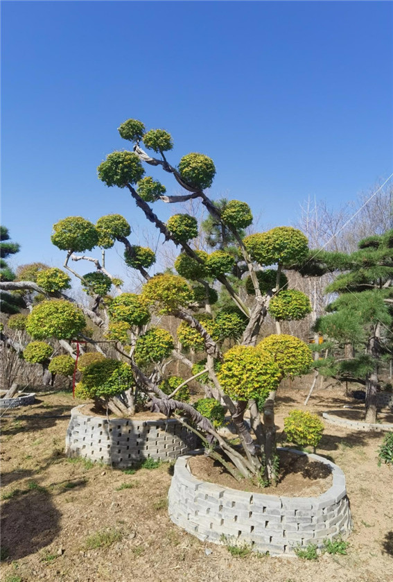 金地園藝場的特色產(chǎn)品是大葉女貞造型樹。原來做造型樹多用小葉女貞,成規(guī)模地生產(chǎn)造型大葉女貞屬于園藝場的一個創(chuàng)舉,這也為目前積壓較多的大葉女貞的應(yīng)用打開了一個新思路。而且大葉女貞在鄢陵冬季常綠,與園藝場內(nèi)葉子落盡的對節(jié)白蠟形成了鮮明的對比。金地園藝場還從江浙引進了亮晶女貞,做出了叢生的、金黃色葉片的造型樹。