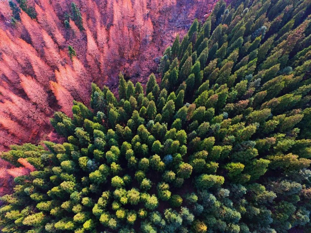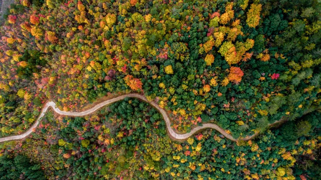 遠(yuǎn)處彩林就像是被潑了墨,渲染了山峰,眼前層林盡染,千樹紅葉輕搖慢舞,深紅的、淺紅的、淺黃的、深黃的……