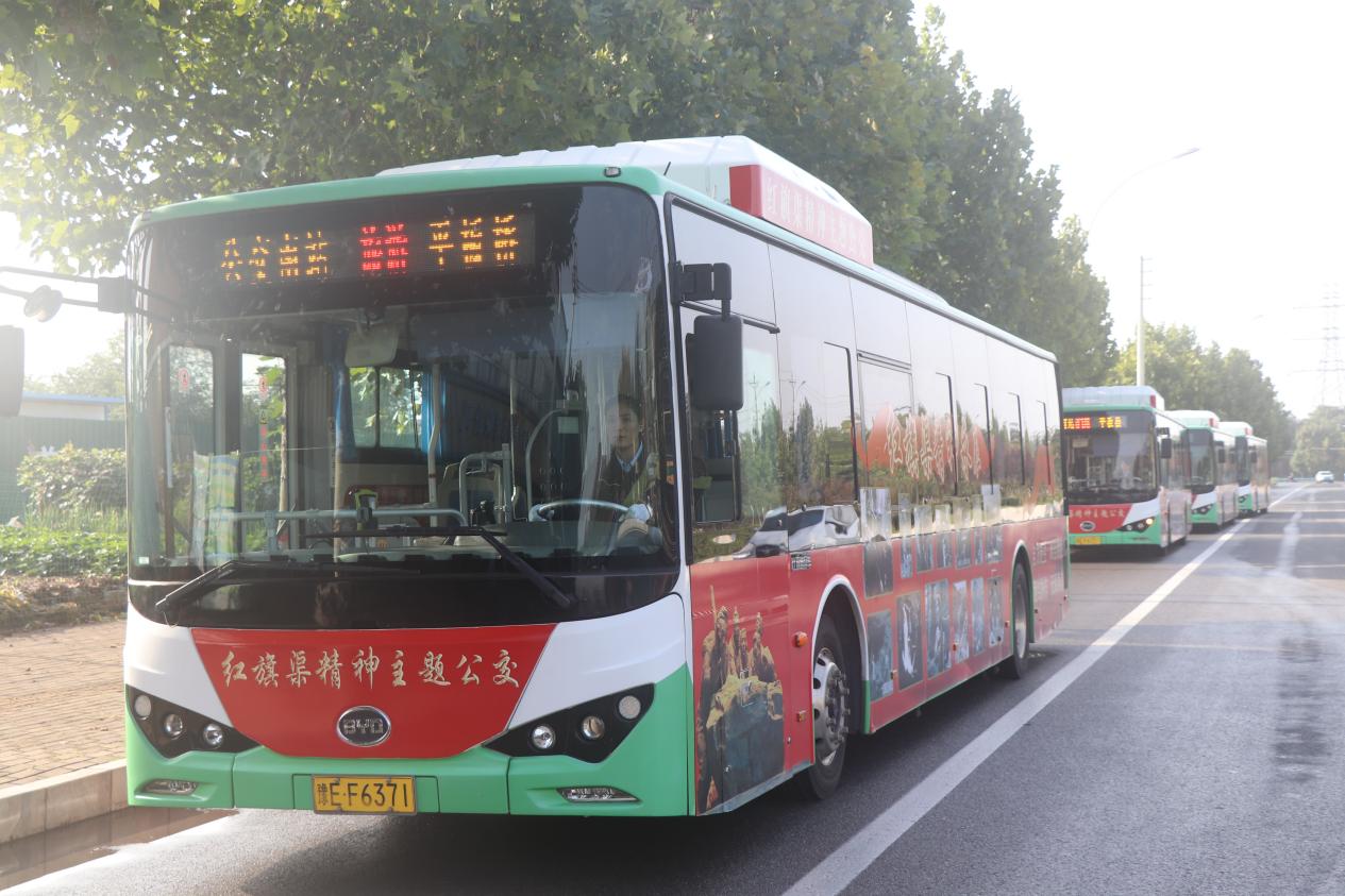 圖為運(yùn)行中的紅旗渠精神主題公交。
