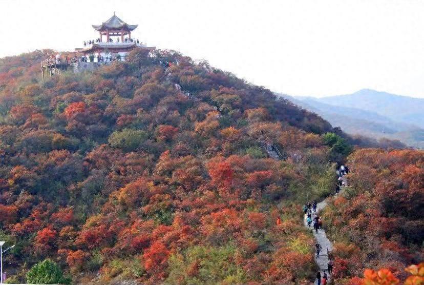 遠(yuǎn)遠(yuǎn)望去,紅葉像一片片火焰在山間跳躍舞動,將群山裝點得如同仙境一般。走在山徑上,落葉發(fā)出“沙沙”的聲音,有一種別樣的美會悄悄打動游客。