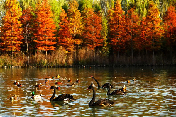 水杉林位于從政坊游園湖畔