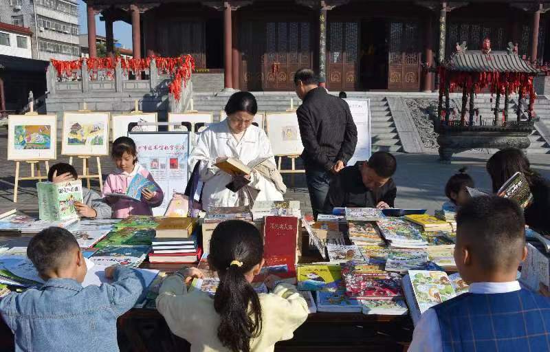 本次活動不僅向游客展出花洲書院相關史料、鄧州史志等地方文獻資料,還展出了鄧州市圖書館閱讀推廣活動掠影、花洲書院主題活動推介等。天朗氣清,花洲書院風景美如畫。游客們紛紛駐足,認真挑選自己心儀的書籍閱讀起來。讓游客們在欣賞美景的同時感受油墨書香,可謂書中有景、景中有書,書、景相互輝映,相得益彰。