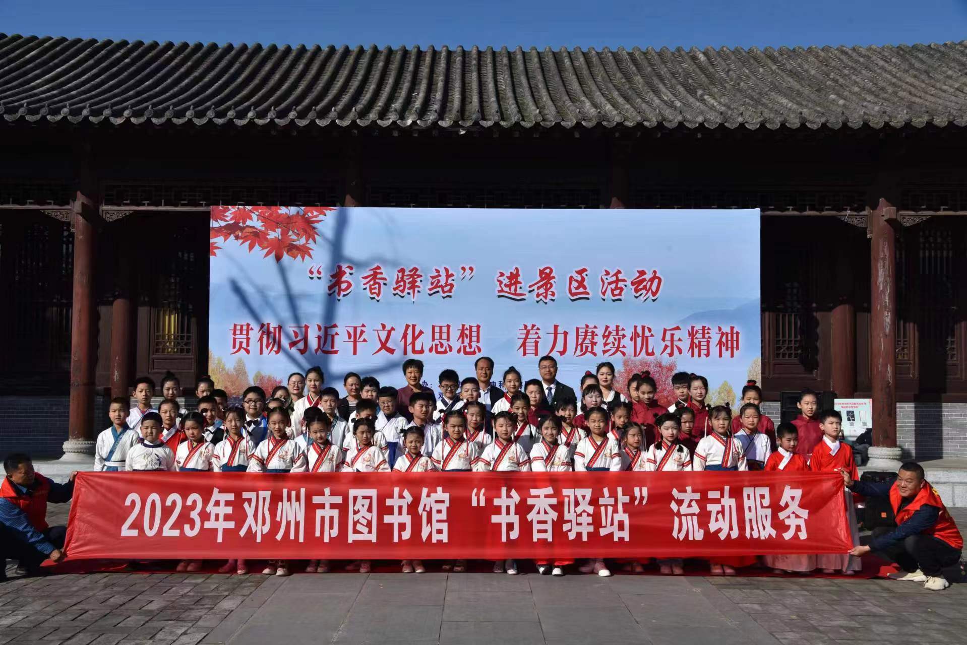 為探索“圖書館+”文旅融合發(fā)展新思路,以豐富的地方文獻資源傳承和弘揚“憂樂精神”文化內(nèi)涵,搭建以旅游景區(qū)為依托的全民閱讀平臺,2023年10月29日,由河南省南陽市鄧州市文化廣電和旅游局主辦,鄧州市圖書館、國家4A級景區(qū)花洲書院承辦的“貫徹習近平文化思想 著力賡續(xù)憂樂精神”——“書香驛站”進景區(qū)流動服務活動在花洲書院隆重舉行。