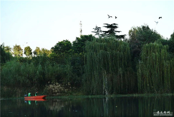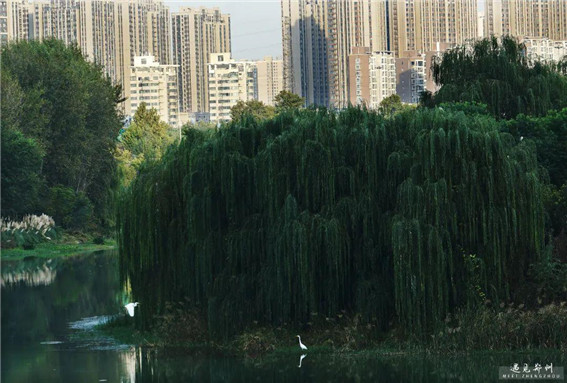 雖然已到深秋,但西流湖公園仍綠意盎然。