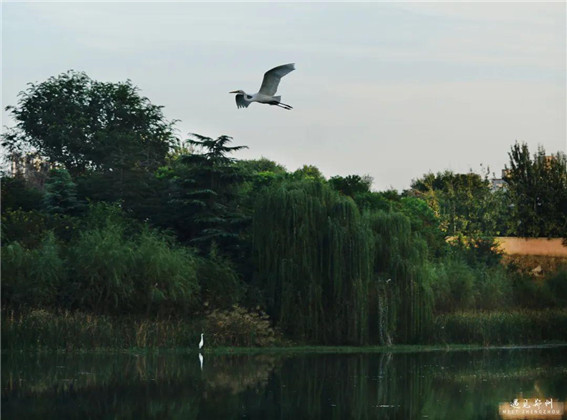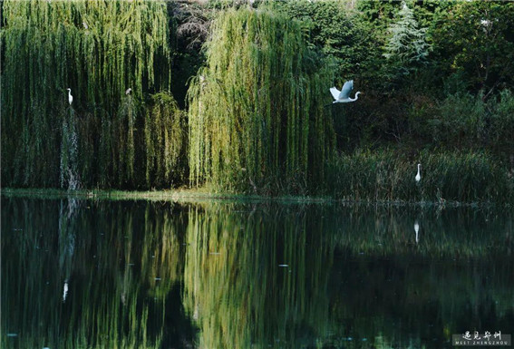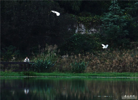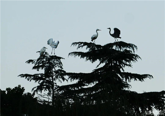 看,西流湖南側的小島上百鳥爭鳴,樹梢上不時有白鷺與蒼鷺追逐嬉戲。