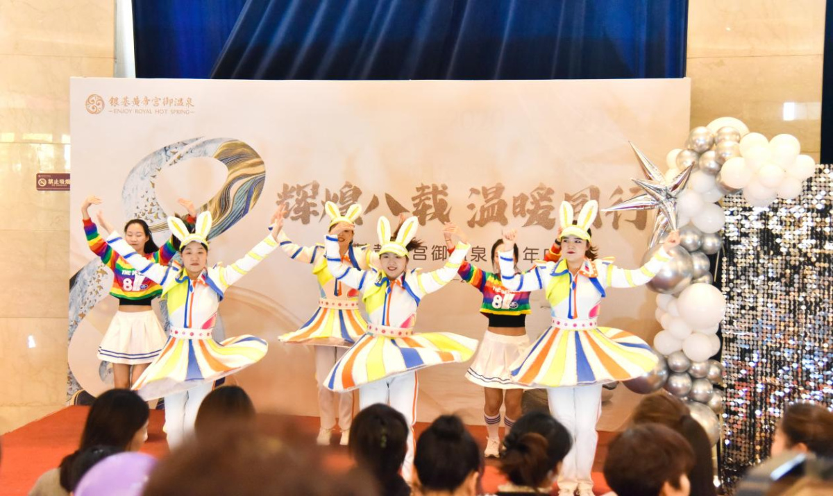慶典在《奇妙的驚喜》舞蹈節(jié)目和抽獎(jiǎng)活動(dòng)中被推向高潮,銀基黃帝宮御溫泉高層與現(xiàn)場(chǎng)觀眾一起分享八周年蛋糕,紀(jì)念這一美好時(shí)刻。