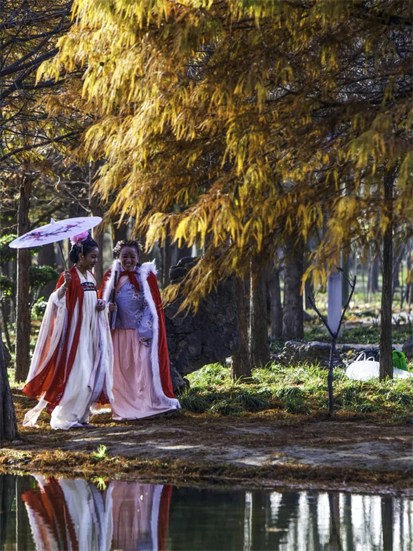 進(jìn)入秋冬季,隋唐城遺址植物園的滴翠湖別有一番江南風(fēng)韻,湖上泛舟,與幾只鴨子偶遇,看湖中魚兒嬉戲,遠(yuǎn)離吵鬧的人群,只有耳邊的水聲潺潺和微風(fēng)拂過的清涼,身與心在此刻達(dá)到從未有過的放松。