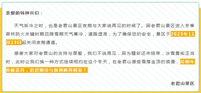 您的當(dāng)前位置:網(wǎng)站首頁(yè) > 出行資訊 > >注意!11月13日起,老君山關(guān)閉夜爬通道