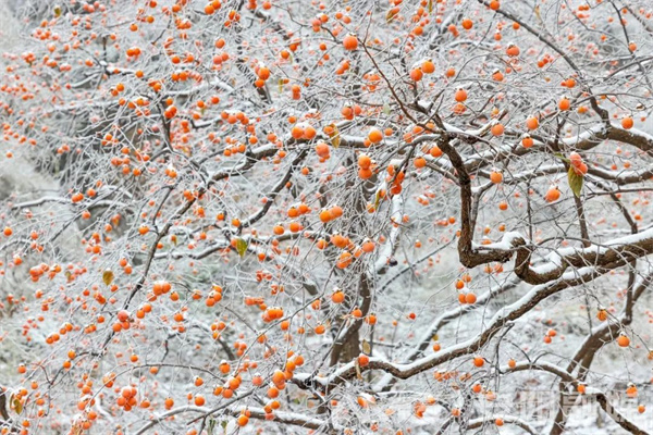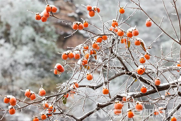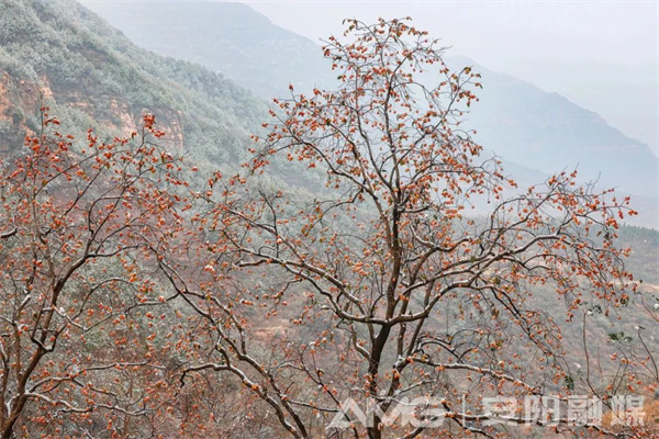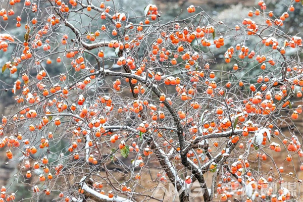 安陽林州太行山上的柿子樹,在經歷入冬的第一場雪后,紅彤彤的柿子仍高傲地掛在遒勁的枝條上,密密匝匝地聚在一起,如火焰般熱烈,在寒風中給人溫暖,如云霞般燦爛,在霜雪中給人力量。