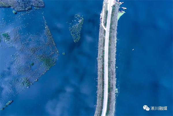 一條“翡翠飄帶“”纏繞在水面、群山之間,水天一色,景色宜人。這里,碧水、青山、綠樹、藍(lán)天讓人目不暇接!景隨心生,輕煙朦朧之中,一幅飄渺的水墨畫便展示在人們眼前。