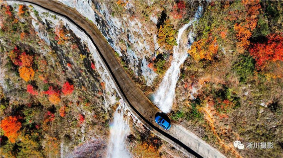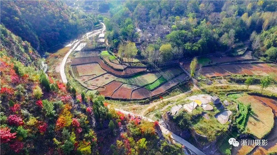 歲月失語,唯石能言。中國傳統(tǒng)村落淅川縣土地嶺石板村,深藏幽深大峽谷,三百年以“石”家,歲月在這里仿佛靜止。秋季以來,盛灣的美五彩斑斕。白色山泉敲擊著灰色山崖,湛藍的天空與嬌艷的群山相接相融,猶如一幅精致的油彩畫,靜靜地平鋪在渠首丹江河畔。
